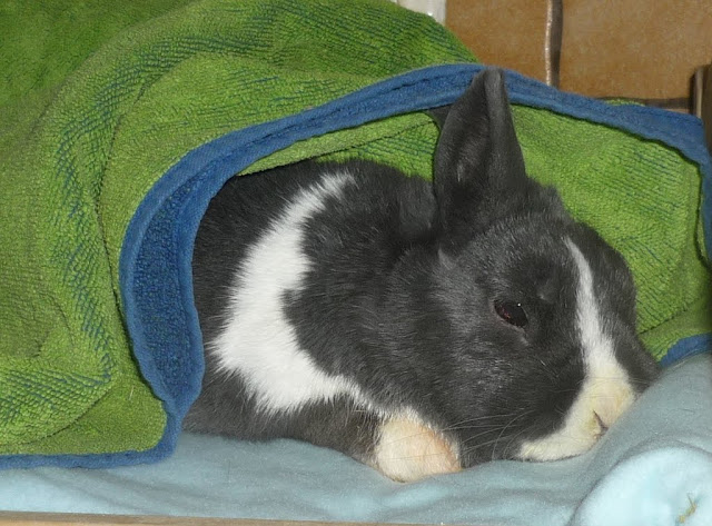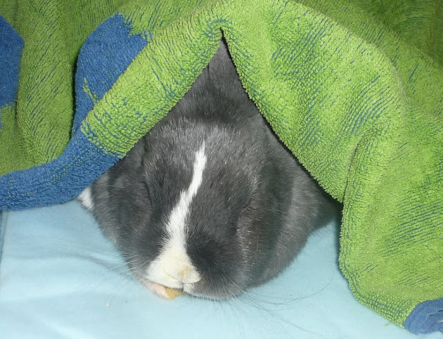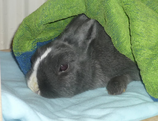 Das ist ja süß ,im Bettchen wird er verwöhnt, hoffentlich geht es ihm morgen schon etwas besser.