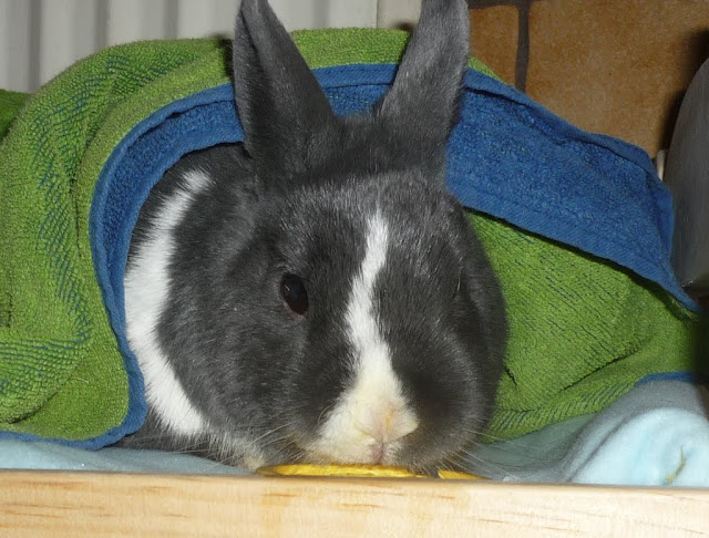eingepackt im Handtuch und drunter seien Fleecedecke im Bettchen