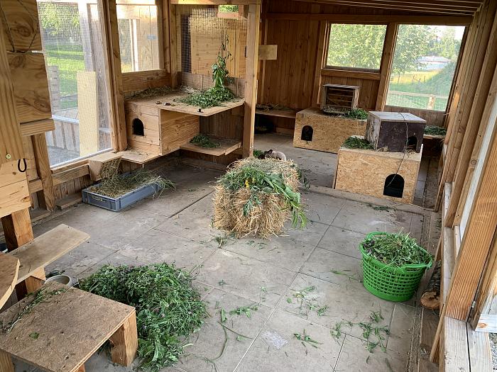 Beim Gehegebau habe ich das riesen Glück, dass mein Mann in der Holzindustrie arbeitet, eine Werkstatt besitzt und viel praktisches Können hat (im Gegensatz zu mir). So konnte er mir ein Gehege ganz nach meinen Wünschen bauen.