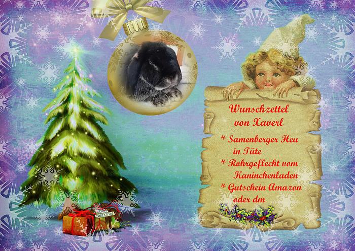 Für Xaverl wird es sein erstes richtiges Weihnachtsfest. Dafür kann man auch mal was "Nichtkaninisches" machen, nämlich Wunschzettel schreiben.