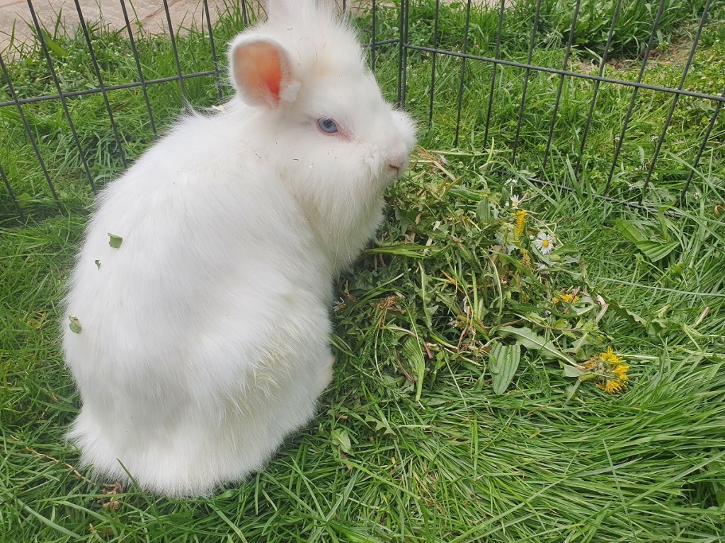 Sari ist weiß mit blauen Augen, nicht kastriert, ohne bekannte Vorerkrankungen und nicht auf EC getestet. Sie ist ein schlaues, neugieriges, hoch soziales Kaninchen, das mit den unterschiedlichsten Charakteren verträglich ist. Sari kann zu einem einsamen Männchen oder auch in eine Gruppe umziehen. Sie kennt Wiesenfütterung und wird in artgerechte Innen- oder Außenhaltung vermittelt. Vergesellschaftungsstress? Nicht mit Sari - bei den diversen Vergesellschaftungen war sie absolut souverän, völlig unkompliziert und es gab keinerlei Stress, Rangeleien, Gejage oder sonstwas. Sari konnte man bislang einfach dazu setzen und es gab null Probleme, so gut sozialisiert ist sie.